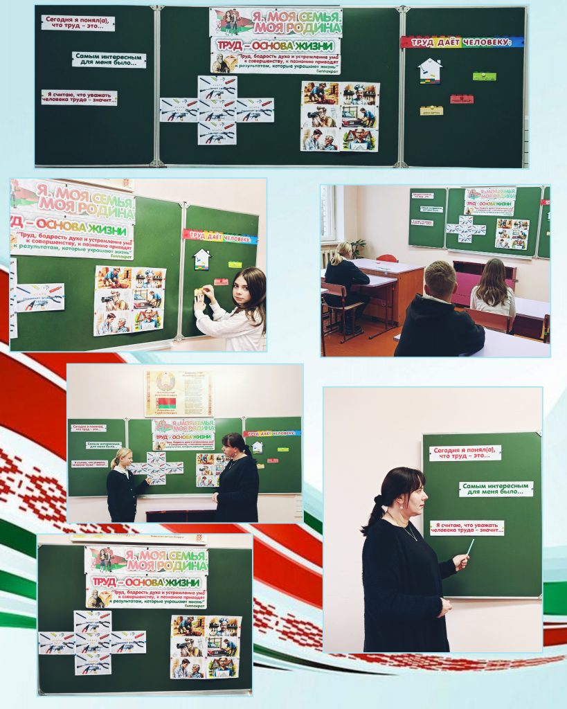 В государственном учреждении образования «Новомарковичская базовая школа Жлобинского района» 21.11.2025 в рамках проекта «Я. Моя семья. Моя Родина» в 8 классе прошло мероприятие по теме «Труд — основа жизни ».