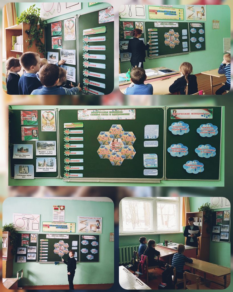 В преддверии общереспубликанского праздничного дня – Дня женщин в государственном учреждении образования «Новомарковичская базовая школа Жлобинского района» прошел единый урок, посвященный Году белорусской женщины. Указом Президента Республики Беларусь 2026 год объявлен Годом белорусской женщины. Ребята и педагоги поговорили об особой роли белорусских женщин в жизни общества и государства, обсудили кого они представляют, слыша слова «белорусская женщина», какие слова можно использовать для создания словесного портрета белорусской женщины. Учащиеся отметили, что белорусская женщина – это мама, воспитатель, труженица, защитник. Она добрая, умная, ласковая, заботливая, сильная. Она воспитывает, учит, лечит, поддерживает, создает. Вспомнили женщин героев Беларуси Д.Домрачеву, М.Василевскую, Е.Полоцкую и др. Сделали вывод, что белорусские женщины преобразуют окружающий мир на благо общества и государства. И каждая женщина несет особую роль для страны, а также своей семьи.